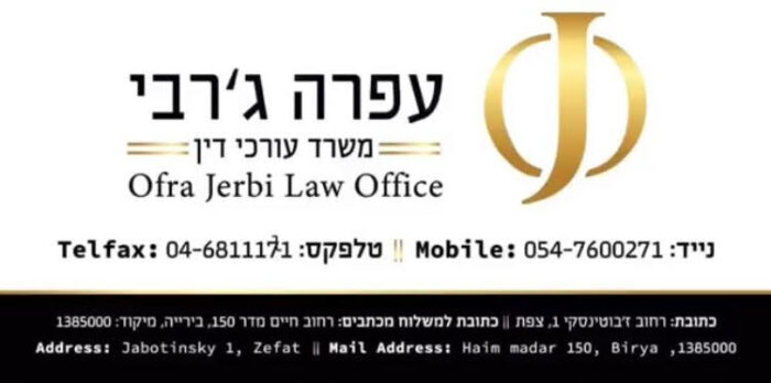 עורכת הדין עפרה ג'רבי ניהלה בשבילי את כל הנושאים המשפטיים שלי וועשתה כמה הסכמים.