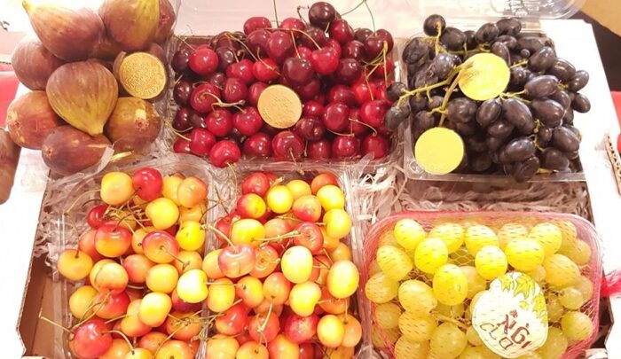 דובדבנים,ענבים שחורים וירוקים,